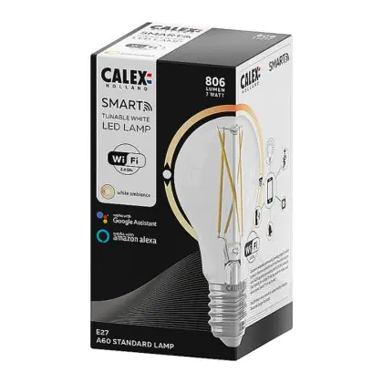 Descrizione Calex Smart Tuya Wifi E27 Pera Filamento 7W 806lm - 818-830 Regolabile Bianca | Dimmerabile - Sostitutiva 60W