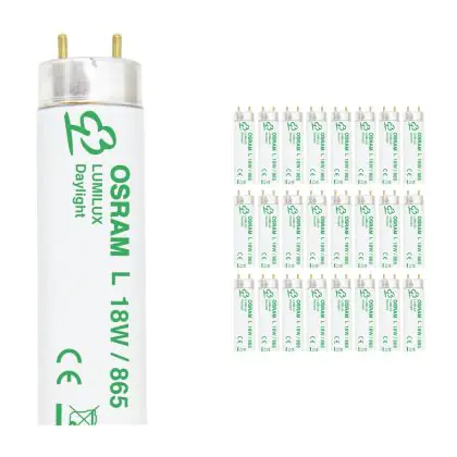 I Confezione Multipack 25x Osram T8 Lumilux 18W - 865 Luce del Giorno | 60cm sono i tubi più comuni e tra le lampade più vendute nel mondo. Questi tubi T8 (TL-D per Philips) hanno una lunghezza la quale corrisponde alla potenza di 18W.