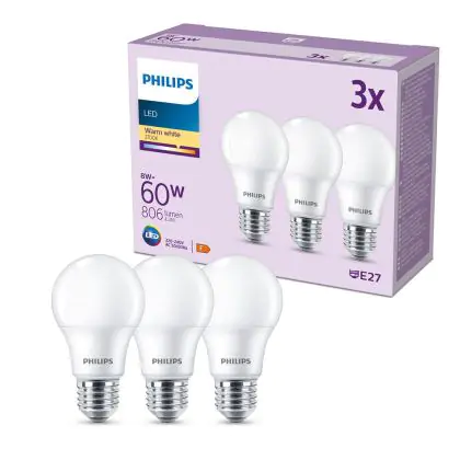 | Nome del fabbricante | Box 3 stuks - Philips LED Lamp Mat - 60 W - E27 - Warmwit licht | |