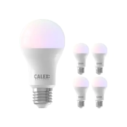 Descrizione Confezione Multipack 5x Calex Smart Tuya Wifi E27 Pera 8.5W 806lm - 822-840 Regolabile Bianca | RGBW - Dimmerabile - Sostitutiva 60W