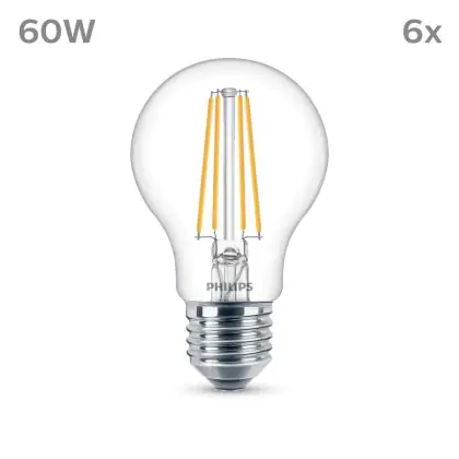 La Confezione Multipack 6x Philips Bulbo LED E27 Pera Filamento Chiara 7W 850lm - 840 Bianco Freddo è la perfetta sostituzione per la tua lampada convenzionale W con attacco E27 grazie alla sua tecnologia LED. Passare a LED ti offrirà tanti vantaggi!