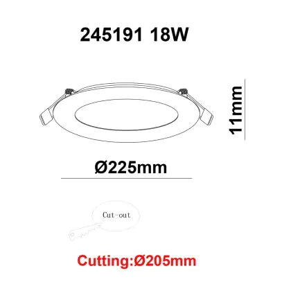 | Nome del fabbricante | White label LED Downlight Round UltraSlim 18W 1450lm 840 CutoutØ205mm FrameØ220mm | |
