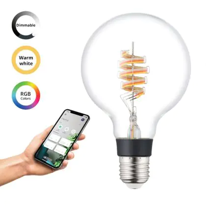 La Eglo Connect.Z Smart LED Globe E27 Filamento Chiara 4.9W 400lm - 830 Luce Calda - + RGB | Dimmerabile - Sostitutiva 40W è la perfetta sostituzione per la tua lampada convenzionale 40W con attacco E27 grazie alla sua tecnologia LED. Passare a LED ti offrirà tanti vantaggi!