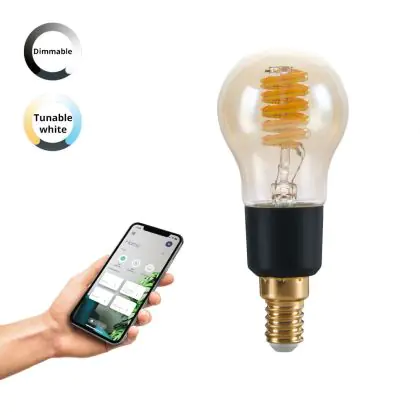 La lampada Eglo Connect.Z Smart LED Sferica E14 Filamento Ambra 4.9W 320lm - 827-865 Regolabile Bianca | Dimmerabile - Sostitutiva 25W è il sostituto perfetto per le tue vecchie lampade 25W con attacco a vite piccolo E14 grazie alla sua tecnologia LED. Passare a LED ti offrirà molti vantaggi!