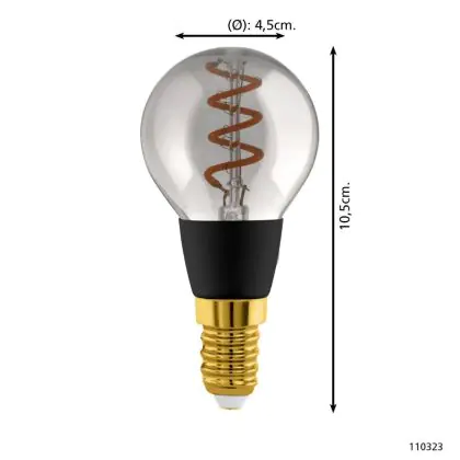 La lampada Eglo Connect.Z Smart LED Sferica E14 Filamento Smokey 4W 150lm - 820 Bianco Molto Caldo | Dimmerabile - Sostitutiva 15W è il sostituto perfetto per le tue vecchie lampade 15W con attacco a vite piccolo E14 grazie alla sua tecnologia LED. Passare a LED ti offrirà molti vantaggi!