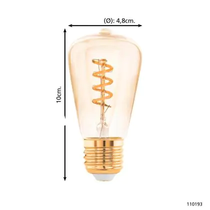 Descrizione Eglo LED Edison E27 Filamento Ambra 4W 145lm - 820 Bianco Molto Caldo | Dimmerabile - Sostitutiva 15W