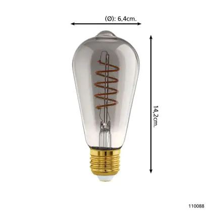 La Eglo LED Edison E27 Filamento Smokey 4W 100lm - 820 Bianco Molto Caldo | Dimmerabile - Sostitutiva 15W è la perfetta sostituzione per la tua lampada convenzionale 15W con attacco E27 grazie alla sua tecnologia LED. Passare a LED ti offrirà tanti vantaggi!
