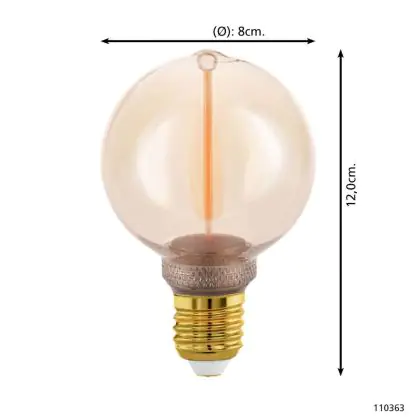 Descrizione Eglo LED Globe E27 Filamento Ambra 2W 100lm - 818 Bianco Molto Caldo | Dimmerabile - Sostitutiva 15W