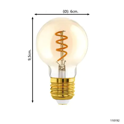 Descrizione Eglo LED Globe E27 Filamento Ambra 4W 145lm - 820 Bianco Molto Caldo | Dimmerabile - Sostitutiva 15W