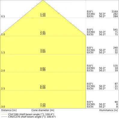 L'apertura del fascio luminoso indica l'angolo del fascio di luce proveniente da una lampada o lampadina. Si misura in gradi (D) e più piccolo è l'angolo, più piccola è l'apertura del fascio di luce.