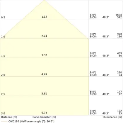 L'apertura del fascio luminoso indica l'angolo del fascio di luce proveniente da una lampada o lampadina. Si misura in gradi (D) e più piccolo è l'angolo, più piccola è l'apertura del fascio di luce.