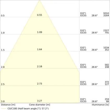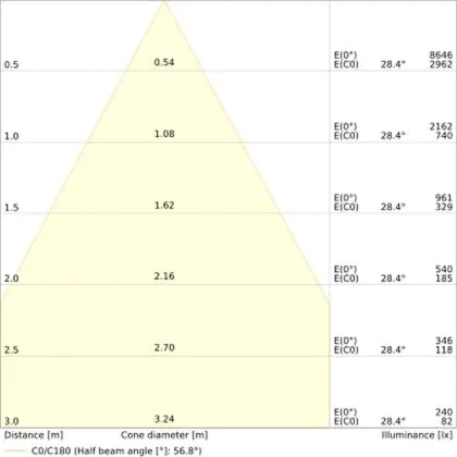 L'apertura del fascio luminoso indica l'angolo del fascio di luce proveniente da una lampada o lampadina. Si misura in gradi (D) e più piccolo è l'angolo, più piccola è l'apertura del fascio di luce.