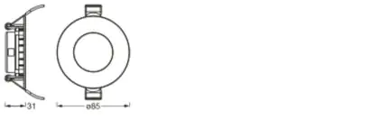 Descrizione Ledvance Downlight LED Slim Recess Bianca 4.5W 240lm 110D - 840 Bianco Freddo | 85mm - Ritaglio 72mm