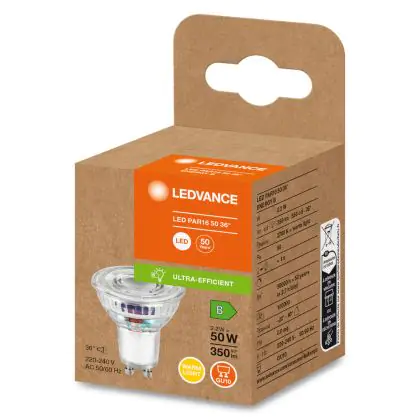 Descrizione Ledvance Energy Efficiency Riflettore Faretti LED GU10 PAR16 2.2W 350lm 36D - 827 - Bianco Molto Caldo |Sostitutiva 50W