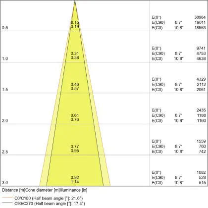 L'apertura del fascio luminoso indica l'angolo del fascio di luce proveniente da una lampada o lampadina. Si misura in gradi (D) e più piccolo è l'angolo, più piccola è l'apertura del fascio di luce.