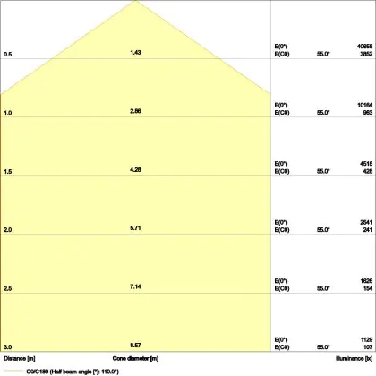 L'apertura del fascio luminoso indica l'angolo del fascio di luce proveniente da una lampada o lampadina. Si misura in gradi (D) e più piccolo è l'angolo, più piccola è l'apertura del fascio di luce.