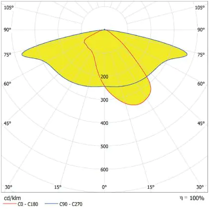L'alloggiamento impermeabile di questa sorgente luminosa non è l'unica ragione per cui è perfetta per l'uso all'aperto. Infatti bisogna considerare anche la distribuzione della luce di questa lampada stradale, che ha apertura del fascio luminoso di 160x58° ed emette luce di colore 4000K - Bianco Freddo.