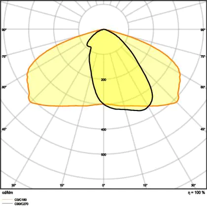 L'alloggiamento impermeabile di questa sorgente luminosa non è l'unica ragione per cui è perfetta per l'uso all'aperto. Infatti bisogna considerare anche la distribuzione della luce di questa lampada stradale, che ha apertura del fascio luminoso di 25x145° ed emette luce di colore 4000K - Bianco Freddo.