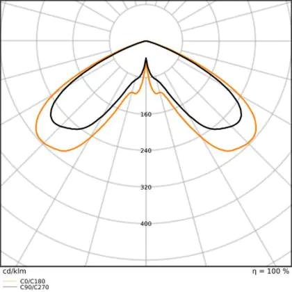 L'alloggiamento impermeabile di questa sorgente luminosa non è l'unica ragione per cui è perfetta per l'uso all'aperto. Infatti bisogna considerare anche la distribuzione della luce di questa lampada stradale, che ha apertura del fascio luminoso di 140° ed emette luce di colore .