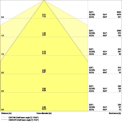 L'apertura del fascio luminoso indica l'angolo del fascio di luce proveniente da una lampada o lampadina. Si misura in gradi (D) e più piccolo è l'angolo, più piccola è l'apertura del fascio di luce.