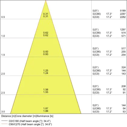 L'apertura del fascio luminoso indica l'angolo del fascio di luce proveniente da una lampada o lampadina. Si misura in gradi (D) e più piccolo è l'angolo, più piccola è l'apertura del fascio di luce.