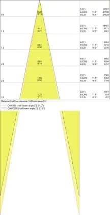 L'apertura del fascio luminoso indica l'angolo del fascio di luce proveniente da una lampada o lampadina. Si misura in gradi (D) e più piccolo è l'angolo, più piccola è l'apertura del fascio di luce.