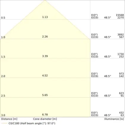 L'apertura del fascio luminoso indica l'angolo del fascio di luce proveniente da una lampada o lampadina. Si misura in gradi (D) e più piccolo è l'angolo, più piccola è l'apertura del fascio di luce.