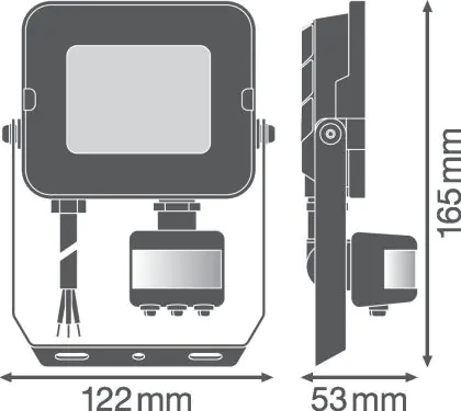 Descrizione Ledvance Proiettore LED Compatto Nero 20W 2000lm 100D - 840 Bianco Freddo | IP65 - Simmetrico - Sensore di movimento e luce