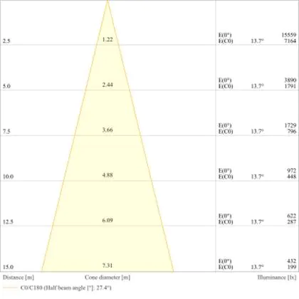 L'apertura del fascio luminoso indica l'angolo del fascio di luce proveniente da una lampada o lampadina. Si misura in gradi (D) e più piccolo è l'angolo, più piccola è l'apertura del fascio di luce.