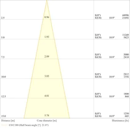 L'apertura del fascio luminoso indica l'angolo del fascio di luce proveniente da una lampada o lampadina. Si misura in gradi (D) e più piccolo è l'angolo, più piccola è l'apertura del fascio di luce.