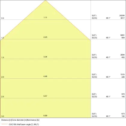L'apertura del fascio luminoso indica l'angolo del fascio di luce proveniente da una lampada o lampadina. Si misura in gradi (D) e più piccolo è l'angolo, più piccola è l'apertura del fascio di luce.