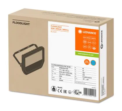 Descrizione Ledvance Proiettore LED GEN 3 Nero 30W 3600lm 100D - 865 Luce del Giorno | IP65 - Simmetrico