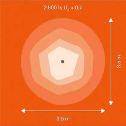 Questo apparecchio può essere usato sia in spazi interni che in spazi esterni, poiché ha indice di protezione contro l'ingresso di acqua e polvere IP66. In generale, un apparecchio con IP44 è resistente a schizzi di acqua e umidità, e può quindi essere installato in spazi esterni molto umidi o esterni riparati, come sono una tettoia. Un apparecchio che invece verrà esposto a intensi getti di acqua deve avere almeno IP54. Questa lampada ha anche un indice di resistenza a urti e impatti di IK08 - 5 Joule.