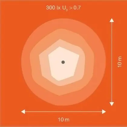 Questo apparecchio può essere usato sia in spazi interni che in spazi esterni, poiché ha indice di protezione contro l'ingresso di acqua e polvere IP66. In generale, un apparecchio con IP44 è resistente a schizzi di acqua e umidità, e può quindi essere installato in spazi esterni molto umidi o esterni riparati, come sono una tettoia. Un apparecchio che invece verrà esposto a intensi getti di acqua deve avere almeno IP54. Questa lampada ha anche un indice di resistenza a urti e impatti di IK08 - 5 Joule.