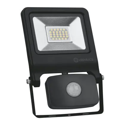 Ledvance Proiettore LED Value Nero 20W 1700lm 110D - 840 Bianco Freddo | IP44 - Sensore di movimento e luce - Simmetrico
