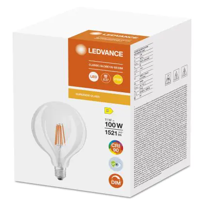 Descrizione Ledvance Superior Classic LED E27 Globe Filamento Chiara 11W 1521lm - 927 Bianco Molto Caldo | Miglior resa cromatica