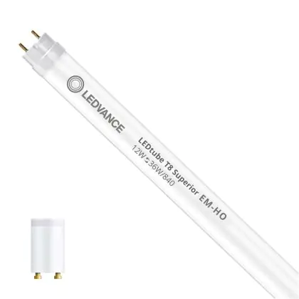 Il Ledvance Tubo LED T8 Superior (EM/Mains) High Output 12W 2100lm - 840 Bianco Freddo | 120cm - Sostitutiva 36W è l’alternativa perfetta per il tubo fluorescente standard 36W nelle plafoniere con un reattore. Con questo tubo LED hai una garanzia di una vita media utile molto lunga e 5 anni Lampadadiretta.it di totale garanzia. .