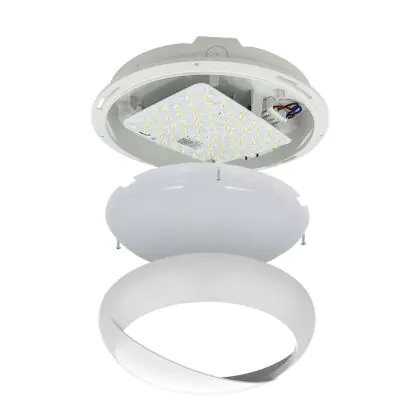 Descrizione Noxion Bulkhead LED Pro V2 Bianca 12/16/20W 2400lm - 830-840-865 CCT | 325mm - IP65 + Palpebra Il Anello Bianca