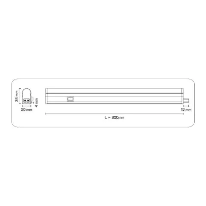 Questa reglette ha una lunghezza di 300mm e tecnologia LED Integrato. Inoltre ha una durata di circa 30000 ore un wattaggio di solo 4 Watt. Questo apparecchio di illuminazione durerà quindi molto a lungo, consumando poca energia.