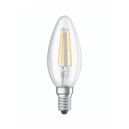 La lampada Osram Classic LED E14 Candela Filamento Chiara 4.8W 470lm - 827 Bianco Molto Caldo | Dimmerabile - Sostitutiva 40W è il sostituto perfetto per le tue vecchie lampade 40W con attacco a vite piccolo E14 grazie alla sua tecnologia LED. Passare a LED ti offrirà molti vantaggi!
