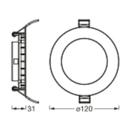 Descrizione Osram Downlight LED Recess Slim Bianca 8W 550lm 110d - 865 Luce Del Giorno | Ritaglio 120mm - IP20