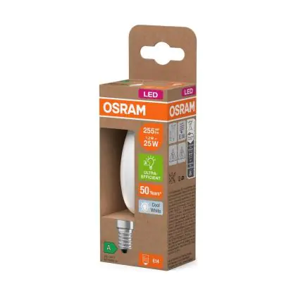 La lampada Osram LED Classic E14 Candela Filamento Ghiaccio 1.2W 255lm - 840 Bianco Freddo | Sostitutiva 25W è il sostituto perfetto per le tue vecchie lampade 25W con attacco a vite piccolo E14 grazie alla sua tecnologia LED. Passare a LED ti offrirà molti vantaggi!