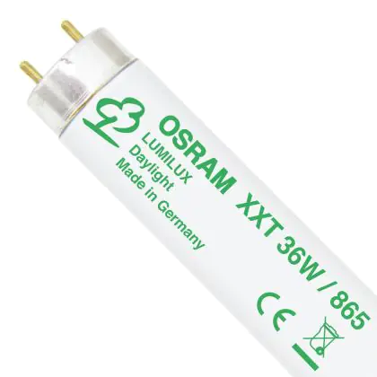 Gli Osram T8 L 36W/865 XXT G13 Daylight sono tubi fluorescenti dotati di una potenza di 36W e di attacco G13. La lunghezza degli stessi é di 120cm. La loro vita, incredibilmente lunga, si colloca intorno alle 80.000 ore in media. L'indice di resa cromatica assume un valore tra 80-89Ra.Tali tubi presentano una temperatura di colore di 6500K: questo indica che emettono una luce definita "daylight" (luce del giorno), simile alla luce di mezzoggiorno.