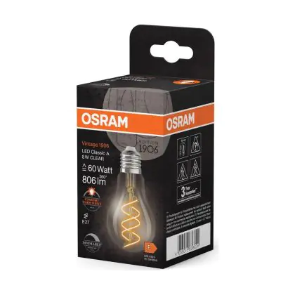 La Osram Vintage 1906 LED Classic Slim E27 Pera Filamento Chiara 8W 806lm - 922 Bianco Molto Caldo | Miglior Resa Cromatica - Dimmerabile - Sostitutiva 60W è la perfetta sostituzione per la tua lampada convenzionale 60W con attacco E27 grazie alla sua tecnologia LED. Passare a LED ti offrirà tanti vantaggi!