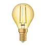La lampada Osram Vintage 1906 LED E14 Sferica Filamento Oro 1.4W 120lm - 825 Bianco Molto Caldo | Sostitutiva 15W è il sostituto perfetto per le tue vecchie lampade 12W con attacco a vite piccolo E14 grazie alla sua tecnologia LED. Passare a LED ti offrirà molti vantaggi!