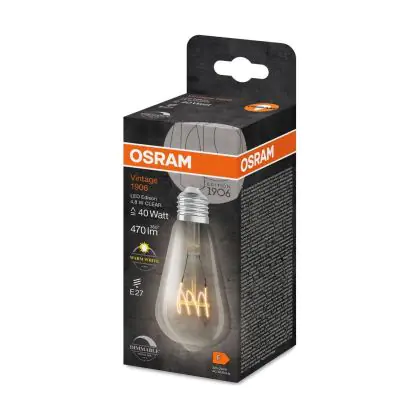La Osram Vintage 1906 LED E27 Edison Filamento Chiara 4.8W 470lm - 827 Bianco Molto Caldo | Dimmerabile - Sostitutiva 40W è la perfetta sostituzione per la tua lampada convenzionale 40W con attacco E27 grazie alla sua tecnologia LED. Passare a LED ti offrirà tanti vantaggi!