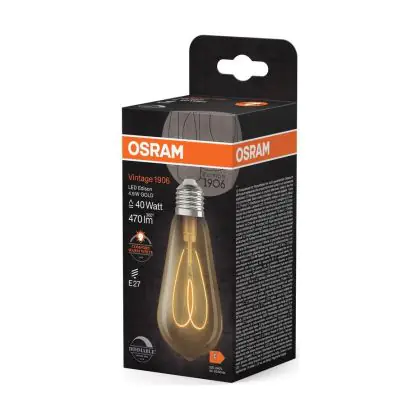 La Osram Vintage 1906 LED E27 Edison Filamento Oro 4.9W 470lm - 922 Bianco Molto Caldo | Miglior Resa Cromatica - Dimmerabile - Sostitutiva 40W è la perfetta sostituzione per la tua lampada convenzionale 40W con attacco E27 grazie alla sua tecnologia LED. Passare a LED ti offrirà tanti vantaggi!