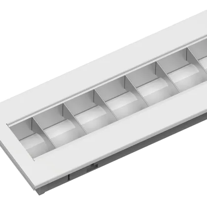 A differenza dei classici pannelli LED, questo pannello Louvre Excell G2 presenta uno strato riflettente che consente di sfruttare al massimo l’emissione luminosa, dirigendola verso l’area da illuminare.