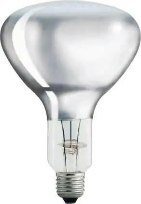 Questa lampadina Philips è una lampada a infrarossi. La radiazione infrarossa di questa lampada non può essere vista a occhio nudo ma produce una luce calda. Ci sono diversi tipi si sistemi di illuminazione a infrarossi, come, per esempio, questo faretto.