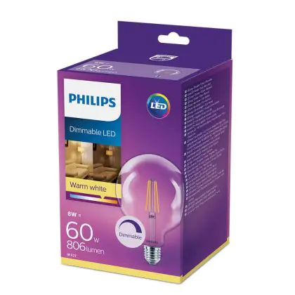 La Philips Classic LED Globe E27 Filamento Chiara 120mm 8W 806lm - 827 Bianco Molto Caldo | Dimmerabile - Sostitutiva 60W è la perfetta sostituzione per la tua lampada convenzionale 60W con attacco E27 grazie alla sua tecnologia LED. Passare a LED ti offrirà tanti vantaggi!